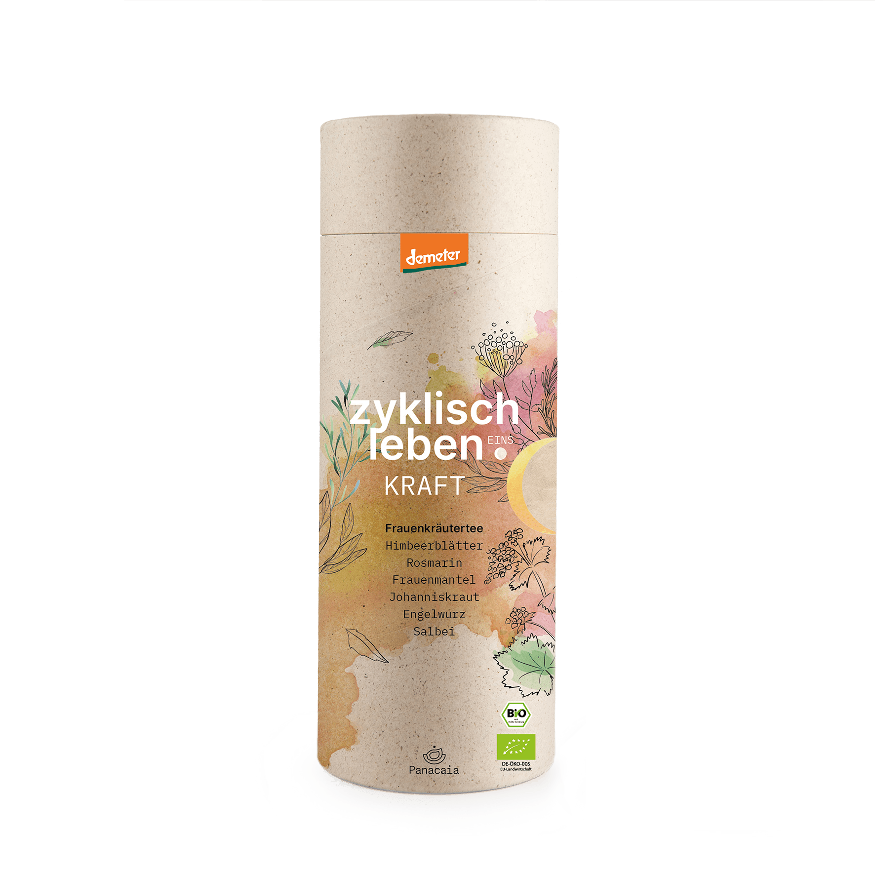 - Pendant l'allaitement : Nous recommandons généralement d'attendre la fin de l'allaitement avant de boire la tisane, car notre mélange « Kraft » pour la première moitié du cycle contient de la sauge, qui inhibe la lactation. De plus, d'autres processus hormonaux se produisent pendant l'allaitement et affectent votre cycle, ce qui est souvent tout à fait normal.